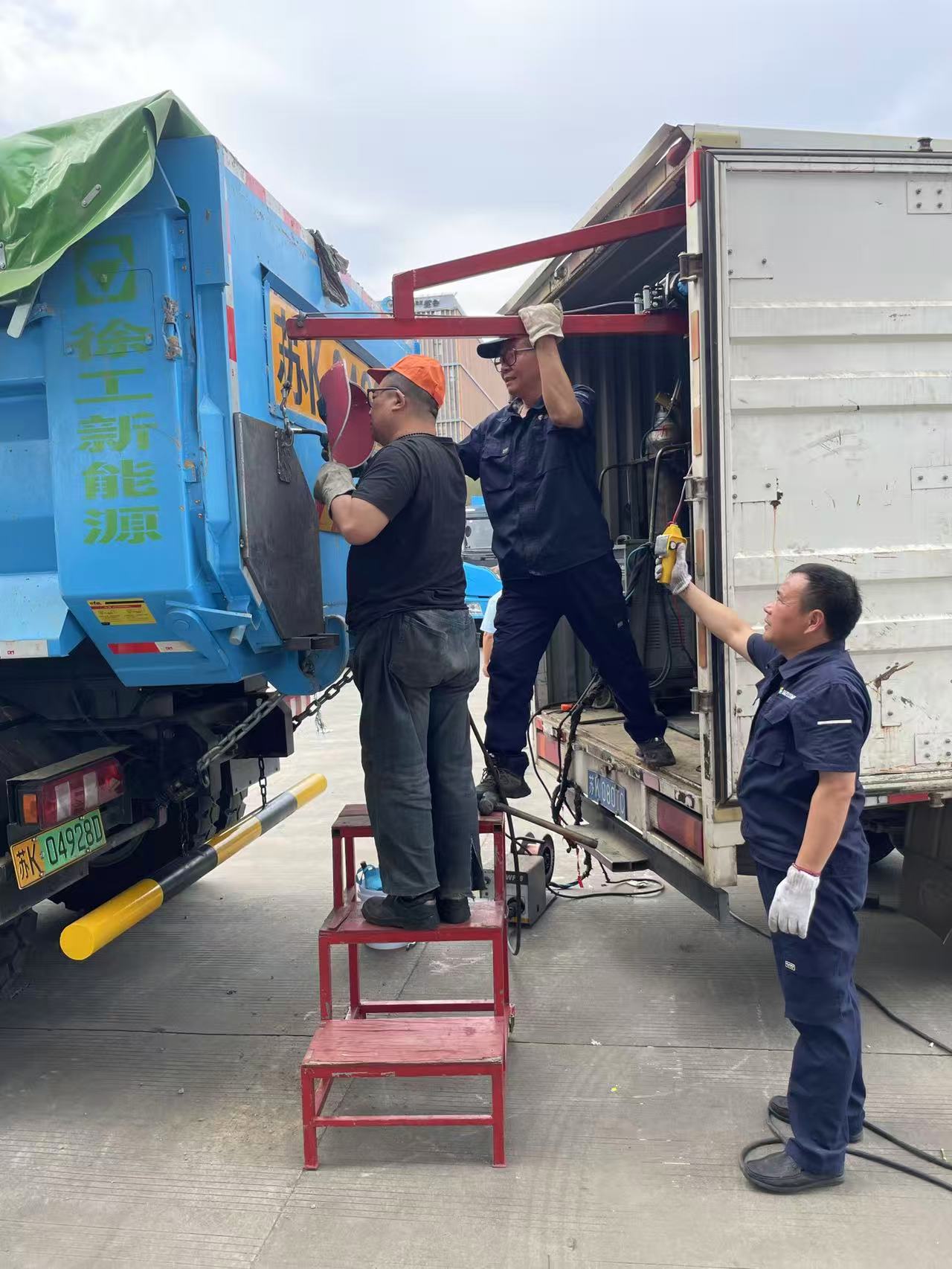 自首批新能源渣土車正式投入運(yùn)營以來,通過實(shí)際使用后,準(zhǔn)備對(duì)車輛安全性能進(jìn)行升級(jí)改造,加固后艙門、加裝防撞梁及改造燈光系統(tǒng)。揚(yáng)汽修理廠接到兄弟單位的需求,迅速行動(dòng),組織技術(shù)骨干成立專項(xiàng)小組,第一時(shí)間趕赴現(xiàn)場開展定制化改造。